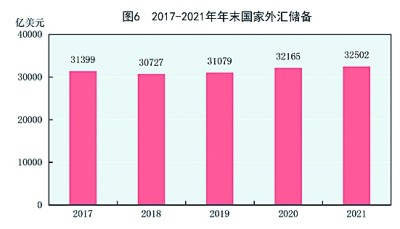 年末國家外匯儲(chǔ)備32502億美元,比上年末增加336億美元。全年人民幣平均匯率為1美元兌6.4515元人民幣,比上年升值6.9%。(見圖6)