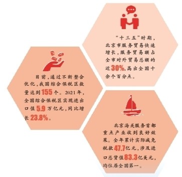 由加工貿(mào)易到醫(yī)藥物流集散、文化保稅展拍、航材保稅維修、保稅電商……北京天竺綜合保稅區(qū)經(jīng)過多年發(fā)展,已成為全國空港型綜合保稅區(qū)改革創(chuàng)新的積極踐行者,為全國提供了一批可復(fù)制可推廣的“北京經(jīng)驗(yàn)”?!皟蓞^(qū)”建設(shè)啟動(dòng)以來,34項(xiàng)政策全國先行先試,以首善標(biāo)準(zhǔn)打造高水平開放新高地,北京正在以創(chuàng)新的姿態(tài),連接中外,擁抱未來,以海納百川的氣魄,引進(jìn)國際優(yōu)質(zhì)要素資源。
