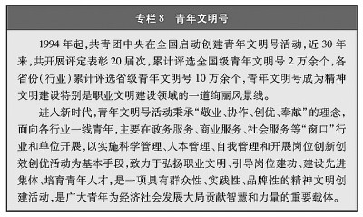無論在城鎮(zhèn)還是鄉(xiāng)村、企業(yè)還是學(xué)校,青年都自覺把正確的道德認(rèn)知、自覺的道德養(yǎng)成、積極的道德實(shí)踐緊密結(jié)合起來,帶頭倡導(dǎo)向上向善社會(huì)風(fēng)氣、塑造社會(huì)文明新風(fēng)尚。在城鄉(xiāng)社區(qū)建設(shè)中,越來越多的青年投身社區(qū)治理和服務(wù)體系建設(shè),主動(dòng)參加“社區(qū)青春行動(dòng)”,加強(qiáng)實(shí)踐鍛煉、提升服務(wù)貢獻(xiàn)。在各行各業(yè),青年秉承“敬業(yè)、協(xié)作、創(chuàng)優(yōu)、奉獻(xiàn)”的理念,踴躍創(chuàng)建“青年文明號(hào)”,大力弘揚(yáng)新時(shí)代職業(yè)文明,展現(xiàn)新時(shí)代職業(yè)形象。廣大青年運(yùn)動(dòng)員弘揚(yáng)體育道德風(fēng)尚,以良好的賽風(fēng)賽紀(jì)和文明禮儀,獲得競(jìng)技成績(jī)和精神文明雙豐收。1993年“中國(guó)青年志愿者行動(dòng)”啟動(dòng)以來,志愿服務(wù)成為青年參與社會(huì)治理、履行社會(huì)責(zé)任的一面旗幟,成為青年在奉獻(xiàn)人民、服務(wù)社會(huì)中鍛煉成長(zhǎng)的重要途徑。截至2021年底,全國(guó)志愿服務(wù)信息系統(tǒng)中14歲至35歲的注冊(cè)志愿者已超過9000萬(wàn)人,他們活躍在社區(qū)建設(shè)、大型賽事、環(huán)境保護(hù)、扶貧開發(fā)、衛(wèi)生健康、應(yīng)急救援、文化傳承等各個(gè)領(lǐng)域,弘揚(yáng)“奉獻(xiàn)、友愛、互助、進(jìn)步”的志愿精神,在全社會(huì)形成團(tuán)結(jié)互助、平等友愛、共同前進(jìn)的新風(fēng)尚。中國(guó)青年志愿者扶貧接力計(jì)劃研究生支教團(tuán)、大學(xué)生志愿服務(wù)“西部計(jì)劃”連續(xù)18年派遣41萬(wàn)余名研究生、大學(xué)畢業(yè)生,到中西部2100多個(gè)縣(市區(qū)旗)開展扶貧支教、衛(wèi)生醫(yī)療等志愿服務(wù)。青年始終是大型賽會(huì)志愿服務(wù)的主體力量,給千家萬(wàn)戶乃至全世界留下深刻印象。