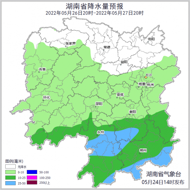 25日至27日,降雨范圍擴(kuò)大,強(qiáng)度減弱,全省大部有小到中雨,湘北、湘南局地有大雨。
