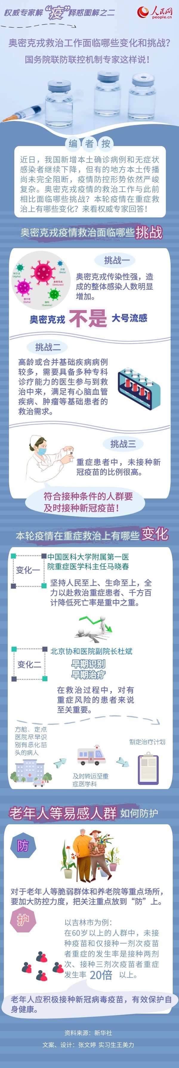 編者按:新冠肺炎疫情發(fā)生以來,我國堅持人民至上、生命至上,堅持外防輸入、內(nèi)防反彈,堅持動態(tài)清零,因時因勢不斷調(diào)整防控措施。近日,國務(wù)院聯(lián)防聯(lián)控機制綜合組專家就當前我國為什么不能放松疫情防控、奧密克戎疫情的救治工作與此前相比有哪些新變化和新挑戰(zhàn)等一系列與疫情防控有關(guān)的最新問題進行權(quán)威解答。今日起,人民網(wǎng)推出系列圖解,為網(wǎng)友解“疫”釋惑。