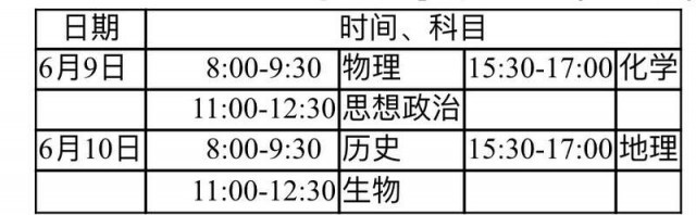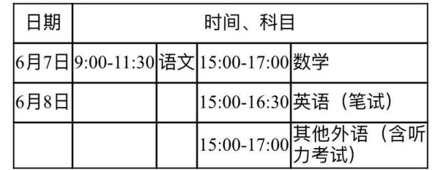 統(tǒng)一高考時(shí)間安排