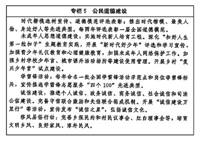 傳承弘揚(yáng)中華傳統(tǒng)美德,加強(qiáng)社會(huì)公德、職業(yè)道德、家庭美德、個(gè)人品德建設(shè),加強(qiáng)家庭、家教、家風(fēng)建設(shè)。加強(qiáng)對(duì)革命、建設(shè)、改革時(shí)期各類先進(jìn)典型的學(xué)習(xí)宣傳,尊崇褒揚(yáng)英雄模范,關(guān)心關(guān)愛先進(jìn)典型人物。健全家庭、學(xué)校、政府、社會(huì)相結(jié)合的思想道德教育體系,把立德樹人貫穿學(xué)校教育全過程。發(fā)揮優(yōu)秀文化產(chǎn)品陶冶道德情操的作用,完善市民公約、鄉(xiāng)規(guī)民約、學(xué)生守則、團(tuán)體章程等社會(huì)規(guī)范,廣泛開展弘揚(yáng)時(shí)代新風(fēng)行動(dòng),深化道德領(lǐng)域突出問題治理。加強(qiáng)農(nóng)村思想道德建設(shè),創(chuàng)新文化科技衛(wèi)生“三下鄉(xiāng)”長(zhǎng)效機(jī)制。