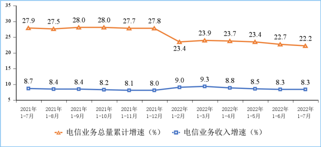 2022年1—7月份通信業(yè)經濟運行情況