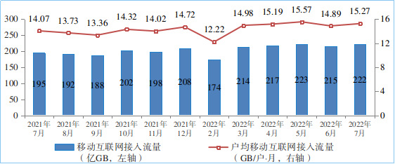 移動互聯(lián)網(wǎng)流量較快增長。1—7月份,移動互聯(lián)網(wǎng)累計流量達1463億GB,同比增長19.1%。截至7月末,移動互聯(lián)網(wǎng)用戶數(shù)達14.55億戶,比上年末凈增3955萬戶。7月當月戶均移動互聯(lián)網(wǎng)接入流量(DOU)達到15.27GB/戶·月,同比增長8.5%,比上年底高0.55GB/戶·月。