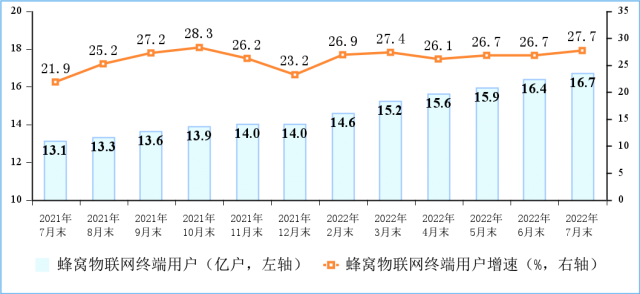 移動網(wǎng)絡連接終端中物聯(lián)網(wǎng)用戶占比近半,IPTV用戶數(shù)穩(wěn)步增加。截至7月末,三家基礎電信企業(yè)發(fā)展蜂窩物聯(lián)網(wǎng)終端用戶16.67億戶,比上年末凈增2.7億戶,占移動網(wǎng)終端連接數(shù)(包括移動電話用戶和蜂窩物聯(lián)網(wǎng)終端用戶)的比重已達49.9%。IPTV(網(wǎng)絡電視)總用戶數(shù)達3.68億戶,比上年末凈增1979萬戶。