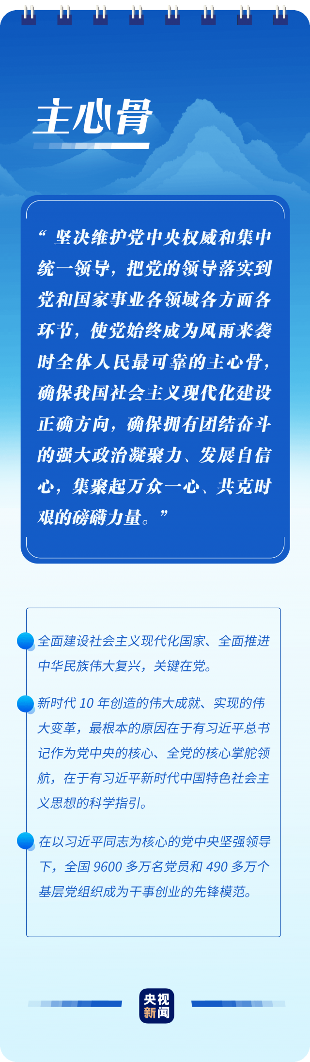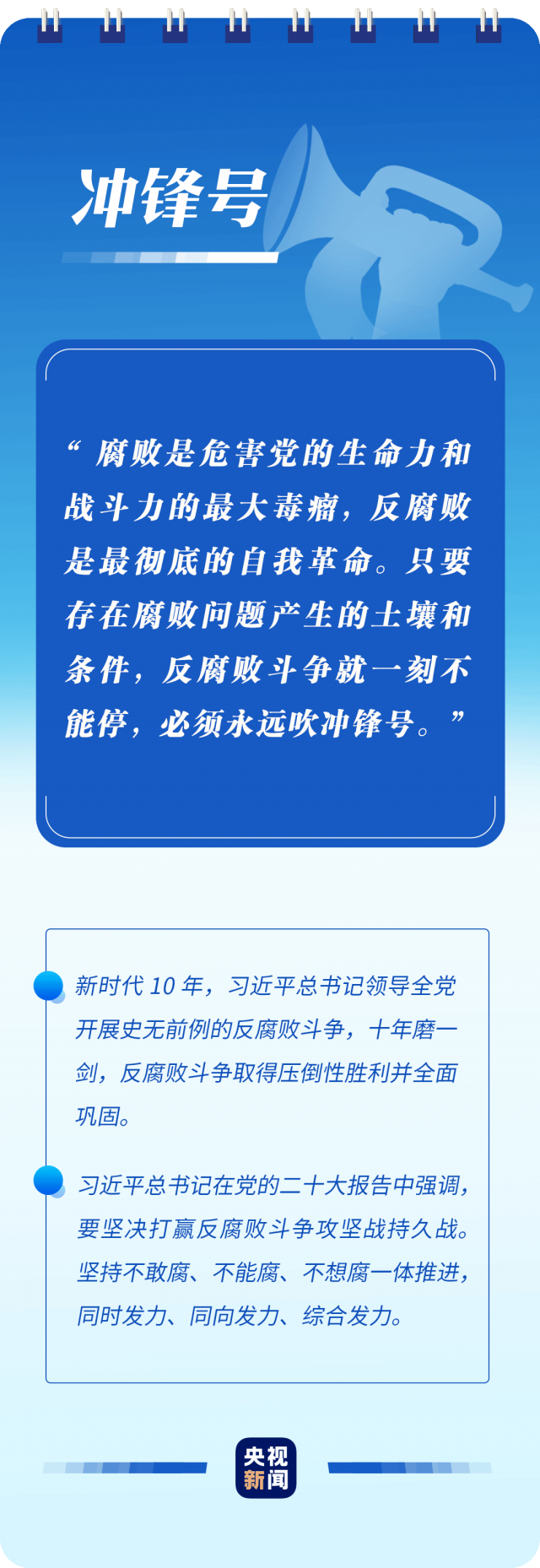 “只有植根本國、本民族歷史文化沃土,馬克思主義真理之樹才能根深葉茂”“使黨始終成為風雨來襲時全體人民最可靠的主心骨”“只要存在腐敗問題產(chǎn)生的土壤和條件,反腐敗斗爭就一刻不能停,必須永遠吹沖鋒號”……