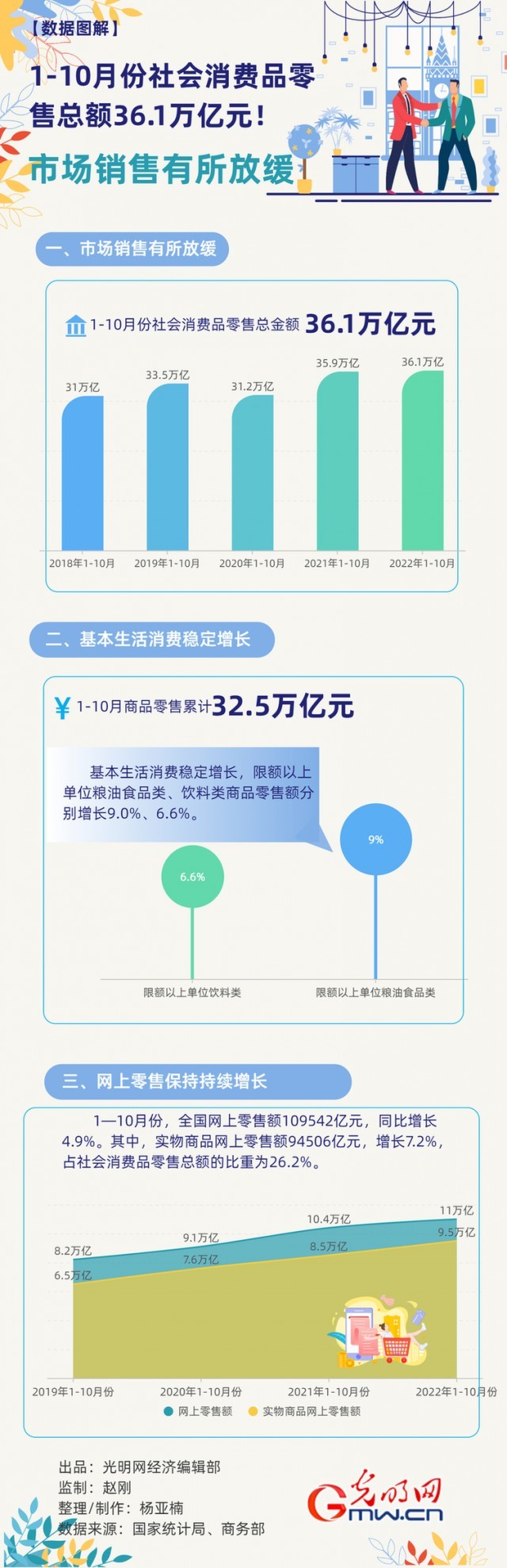 1-10月份社會(huì)消費(fèi)品零售總額36.1萬億元!市場銷售有所放緩