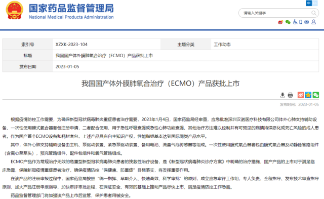 國(guó)產(chǎn)首個(gè)ECMO產(chǎn)品,獲批上市!