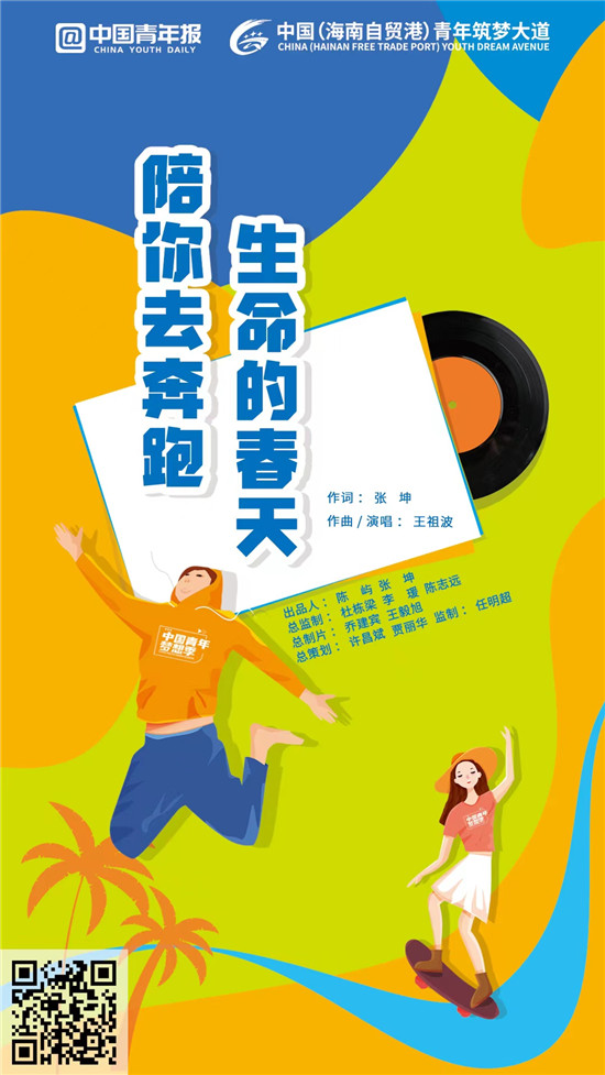 《生命的春天陪你去奔跑》就是這樣一首送給全國(guó)青年朋友的MV。這首MV由中國(guó)青年報(bào)社、共青團(tuán)海南省委聯(lián)合出品,團(tuán)海南省委辦公室主任王祖波作曲,一線優(yōu)秀青年代表演唱,平凡人用心創(chuàng)作唱給平凡人聽(tīng),希望為家國(guó)圓夢(mèng)創(chuàng)造不平凡的業(yè)績(jī),希望為“中國(guó)(海南自貿(mào)港)青年筑夢(mèng)大道”(以下簡(jiǎn)稱“筑夢(mèng)大道”)插上一起向未來(lái)的夢(mèng)想的翅膀。