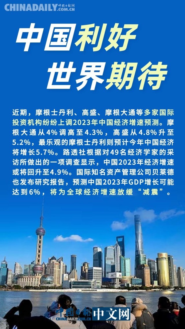 近期,隨著優(yōu)化疫情防控措施成效顯現(xiàn),中國(guó)經(jīng)濟(jì)復(fù)蘇跡象明顯。不少國(guó)際機(jī)構(gòu)也紛紛上調(diào)了對(duì)中國(guó)經(jīng)濟(jì)2023年增長(zhǎng)的預(yù)測(cè)。我們堅(jiān)信,伴隨著各項(xiàng)穩(wěn)定預(yù)期、提振信心的措施逐步落地,今年中國(guó)經(jīng)濟(jì)必將實(shí)現(xiàn)整體性好轉(zhuǎn),且必將持續(xù)為全球經(jīng)濟(jì)增長(zhǎng)提供強(qiáng)大動(dòng)力。