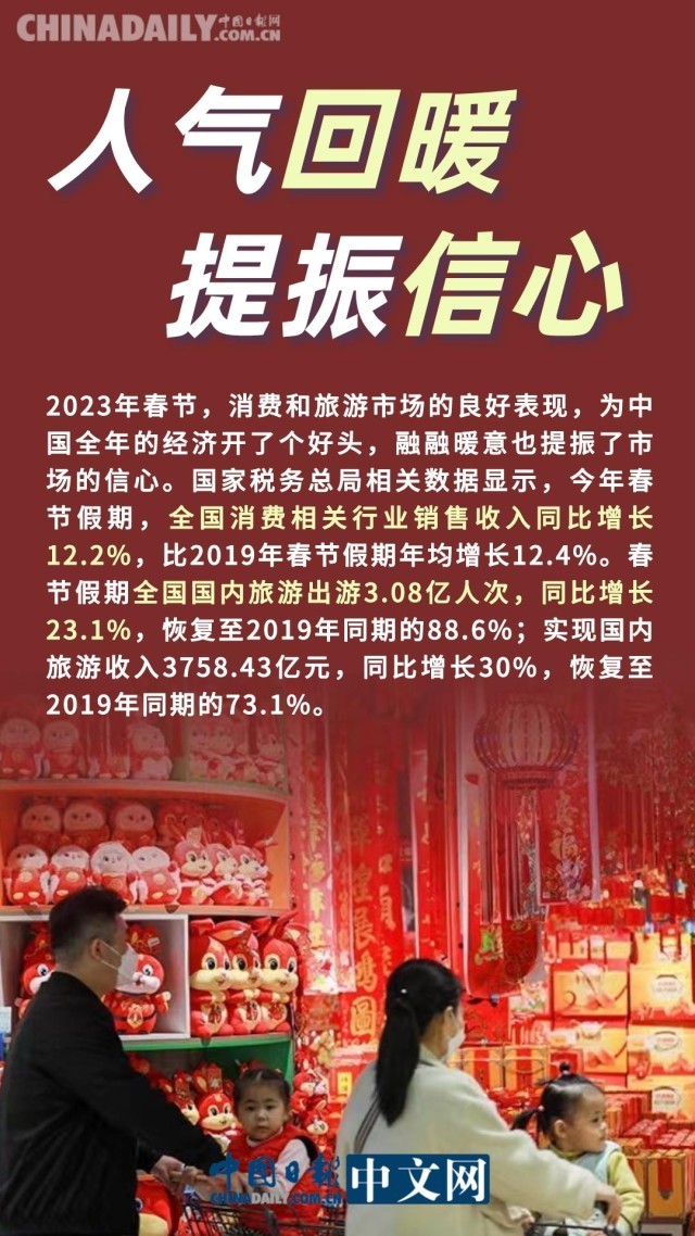 2023年,全球經(jīng)濟(jì)增長(zhǎng)的“引擎力”來自哪里?世界再次將目光投向了中國(guó)。剛剛過去的春節(jié)假期,正是觀察中國(guó)經(jīng)濟(jì)的一扇窗口:消費(fèi)、旅游大幅回暖,人氣旺盛,有效地提振了市場(chǎng)信心,也再次展現(xiàn)了中國(guó)經(jīng)濟(jì)的強(qiáng)大韌性。