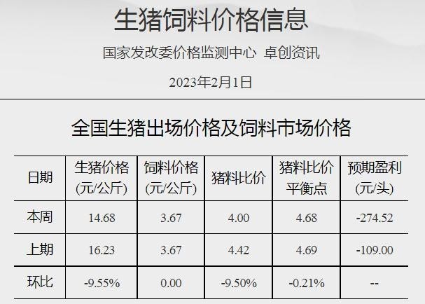 中新網(wǎng)2月6日電 據(jù)國(guó)家發(fā)改委價(jià)格監(jiān)測(cè)中心網(wǎng)站消息,截至2023年2月1日當(dāng)周,全國(guó)豬料比價(jià)為4.00,較春節(jié)前(1月18日)下降9.50%。按目前價(jià)格及成本推算,未來生豬養(yǎng)殖頭均虧損為274.52元。當(dāng)周國(guó)內(nèi)豬價(jià)以降為主。隨著春節(jié)假期收尾,終端消費(fèi)漸顯疲軟,屠宰企業(yè)開工率低位調(diào)整,整體收購難度不大,壓價(jià)情緒較濃,而養(yǎng)殖端雖有抗價(jià)情緒,但生豬出欄壓力仍存,周內(nèi)豬價(jià)小幅走低。