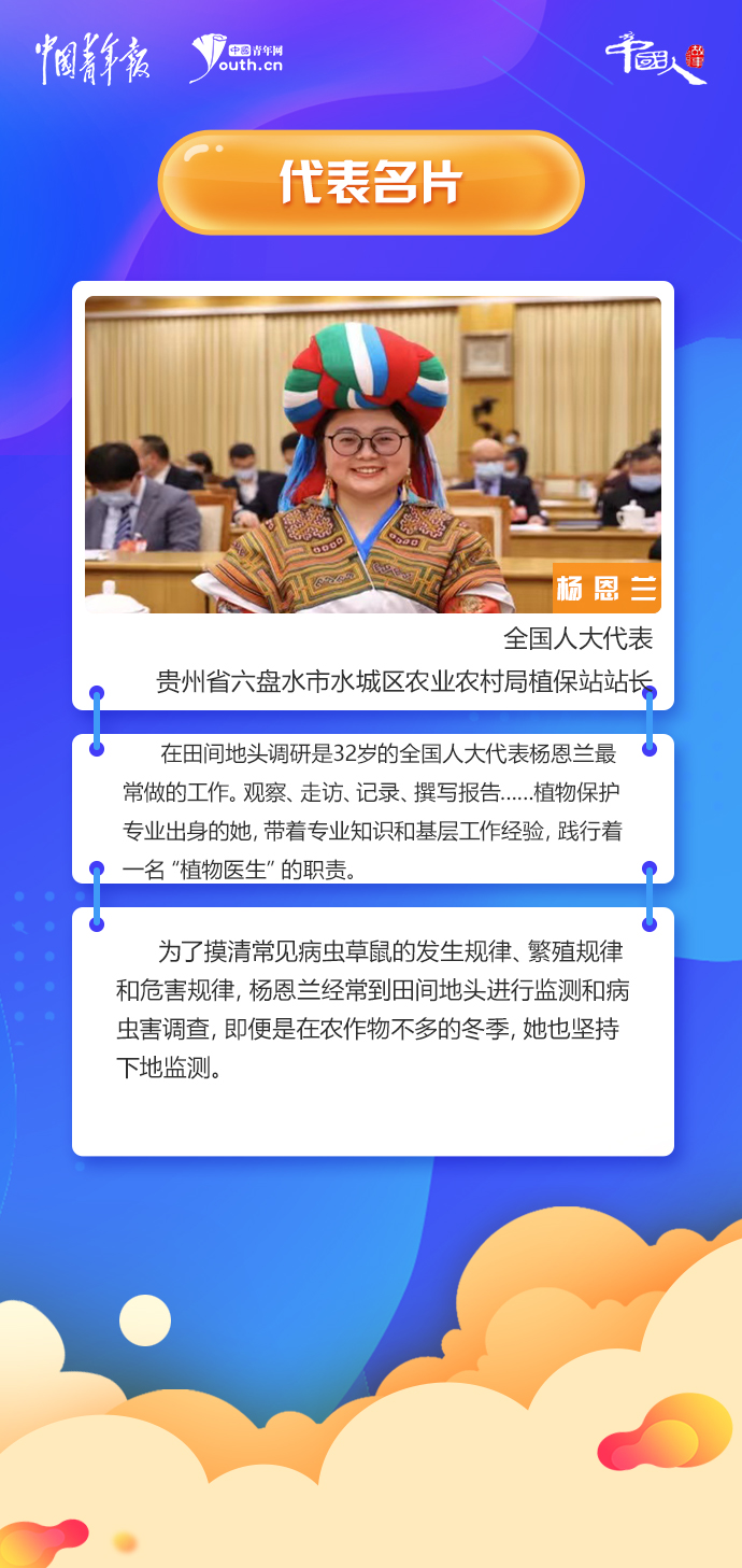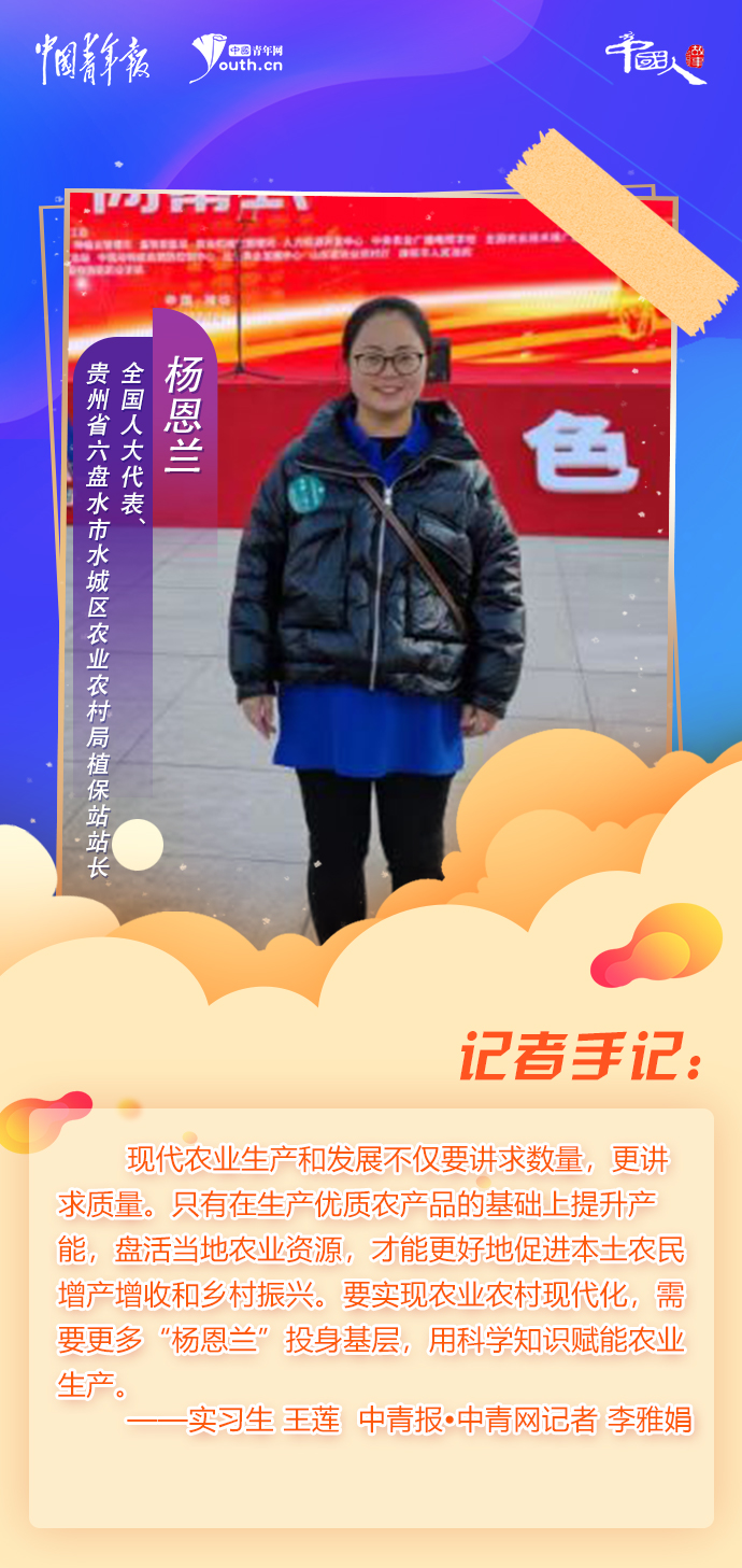 在田間地頭調(diào)研是32歲的全國人大代表楊恩蘭最常做的工作。觀察、走訪、記錄、撰寫報告……植物保護專業(yè)出身的她,帶著專業(yè)知識和基層工作經(jīng)驗,踐行著一名“植物醫(yī)生”的職責。
