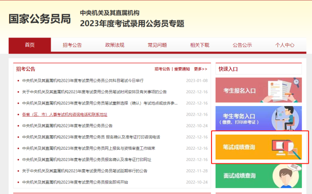 2023國考成績(jī)查詢?nèi)肟陂_放