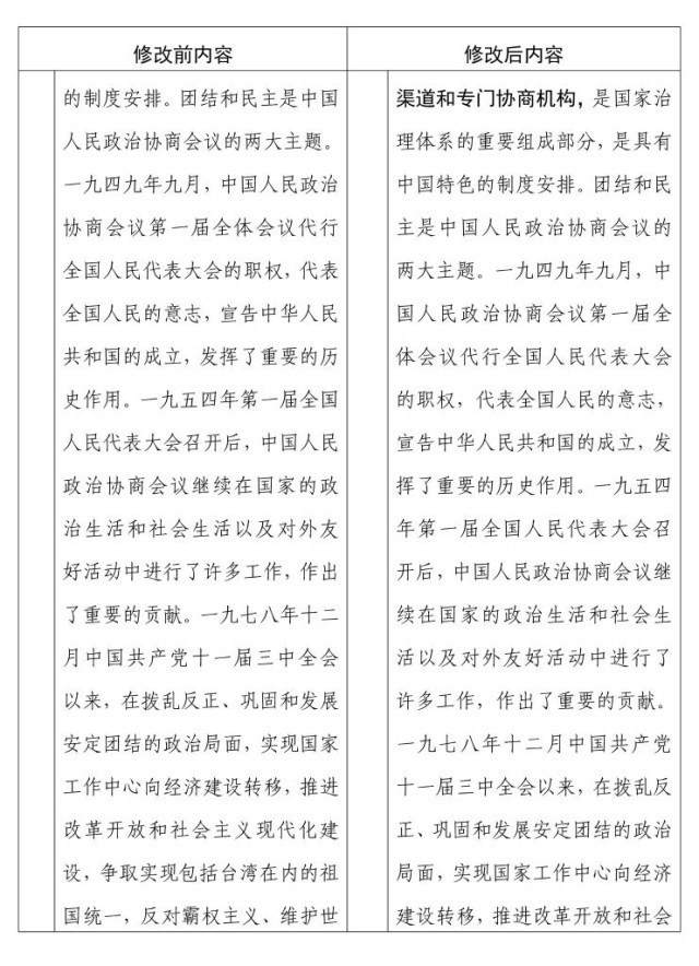 中國人民政治協(xié)商會議章程 修改前后內容對照表