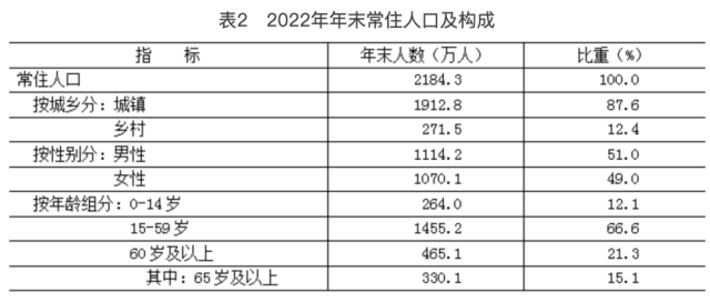 [3] 2022年常住人口有關(guān)數(shù)據(jù)為全國統(tǒng)一組織開展的2022年人口變動(dòng)情況抽樣調(diào)查推算數(shù),調(diào)查標(biāo)準(zhǔn)時(shí)點(diǎn)為2022年11月1日零時(shí)。
