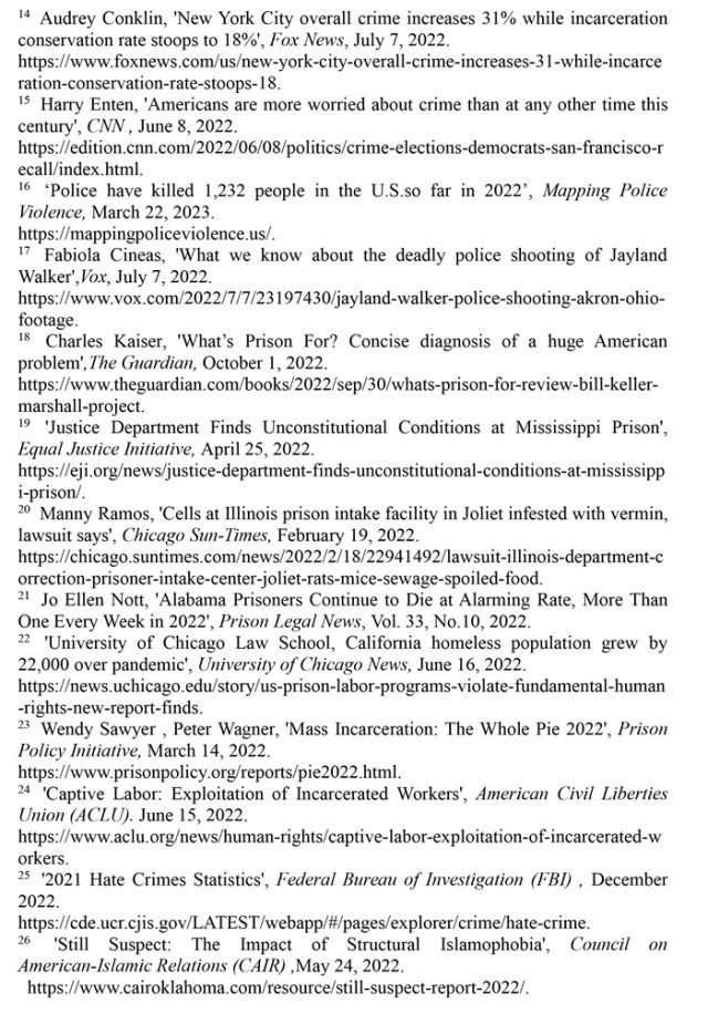 執(zhí)法司法領(lǐng)域種族歧視根深蒂固。聯(lián)合國(guó)消除種族歧視委員會(huì)的結(jié)論性報(bào)告指出,美國(guó)執(zhí)法人員對(duì)有色人種和少數(shù)族裔群體過(guò)度使用暴力并逍遙法外的情況仍然普遍存在;有色人種和少數(shù)族裔在美國(guó)司法系統(tǒng)中被逮捕、監(jiān)禁和長(zhǎng)期虐待的情況突出。(注73)“警察暴力地圖”網(wǎng)站的數(shù)據(jù)顯示,在2013年至2022年的警察殺人事件中,非洲裔被警察殺害的可能性是白人的2.78倍,手無(wú)寸鐵的非洲裔被警察殺害的可能性是手無(wú)寸鐵的白人的1.3倍。在波士頓、明尼阿波利斯和芝加哥,非洲裔被警察殺害的可能性更是白人的20多倍。(注74)美國(guó)國(guó)家公共電臺(tái)2022年9月27日?qǐng)?bào)道,國(guó)家免責(zé)登記處發(fā)布的報(bào)告指出,非洲裔在美國(guó)人口中所占比例不到14%,但在美國(guó)被誤判犯有嚴(yán)重罪行并在至少服完部分刑期后獲釋的所有人中,非洲裔占了53%;美國(guó)非洲裔因三項(xiàng)重大罪行被錯(cuò)誤定罪的可能性是白人的7倍,非洲裔因毒品犯罪被錯(cuò)誤定罪的可能性是其他人的19倍。(注75)美國(guó)國(guó)家學(xué)院出版的《美國(guó)監(jiān)禁的增長(zhǎng):探索原因和后果》一書(shū)指出,滲透著種族主義的刑事司法系統(tǒng)“正日益成為一個(gè)更大的污名化和長(zhǎng)期邊緣化系統(tǒng)的主要通道”。(注76)