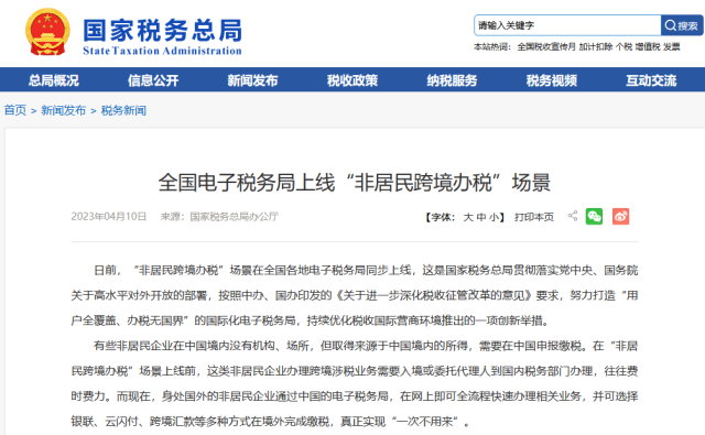 全國(guó)電子稅務(wù)局上線“非居民跨境辦稅”場(chǎng)景
