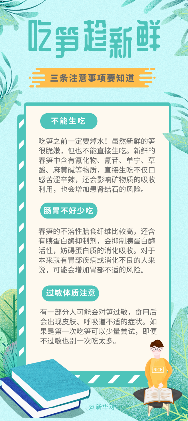 春季吃筍正當(dāng)時(shí),但春筍吃不對也會(huì)帶來健康風(fēng)險(xiǎn)。近日“男子貪吃春筍后嘔血又暈厥”的新聞就給人們提了個(gè)醒,那吃筍有哪些注意事項(xiàng)呢?