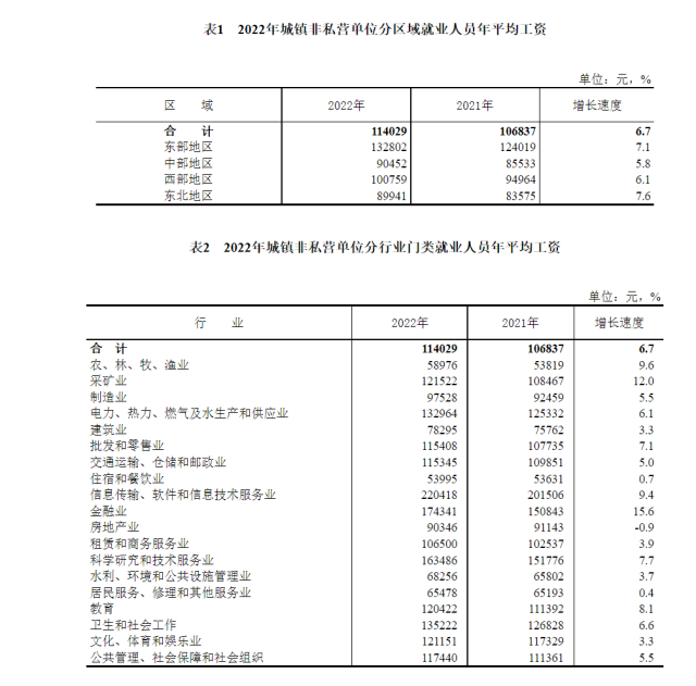 2022年全國城鎮(zhèn)非私營單位就業(yè)人員年平均工資為114029元