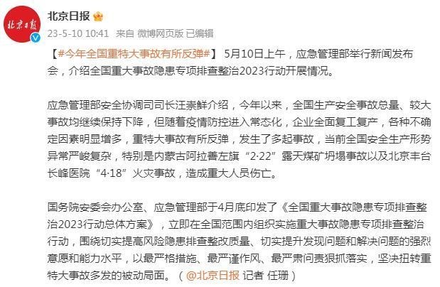 應(yīng)急管理部:今年全國重特大事故有所反彈