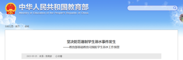 教育部發(fā)布預防學生溺水工作預警