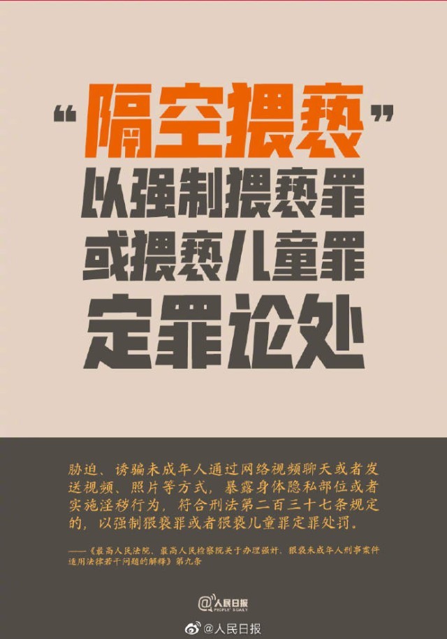 25日,兩高聯(lián)合發(fā)布司法解釋。其中,兩高對(duì)隔空猥褻發(fā)布司法解釋,以強(qiáng)制猥褻罪或猥褻兒童罪定罪論處;精神發(fā)育遲滯未成年懷孕可直接立案…戳↓↓每一個(gè)孩子都要健康快樂成長!