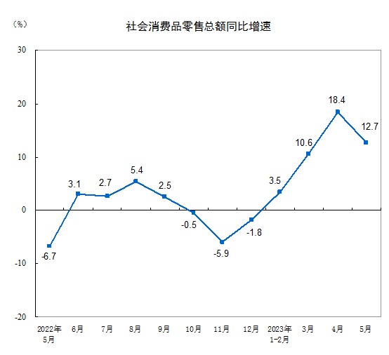國家統(tǒng)計局:今年5月份社會消費品零售總額增長12.7%