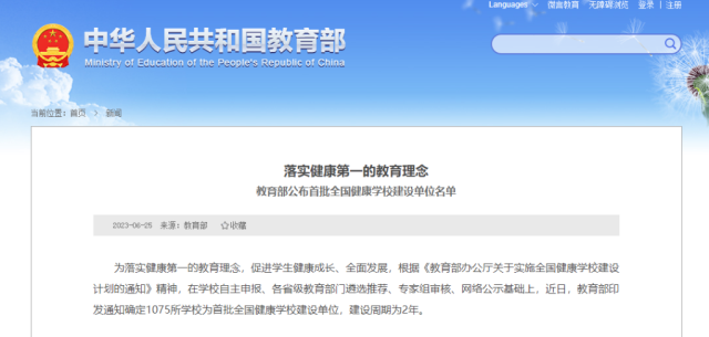 教育部公布首批全國(guó)健康學(xué)校建設(shè)單位名單