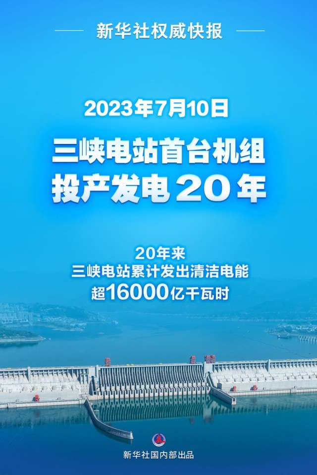 三峽電站是世界裝機(jī)容量最大的水電站,2023年7月10日,三峽電站首臺(tái)機(jī)組投產(chǎn)發(fā)電整20年。