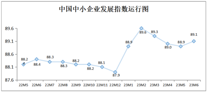 中國中小企業(yè)協(xié)會(huì)今天(10日)發(fā)布,隨著推動(dòng)經(jīng)濟(jì)回暖向好的政策措施持續(xù)發(fā)力生效,我國經(jīng)濟(jì)總體保持恢復(fù)態(tài)勢(shì),中小企業(yè)發(fā)展指數(shù)止跌回升。6月中國中小企業(yè)發(fā)展指數(shù)(SMEDI)為89.1,比上月上升0.2點(diǎn),結(jié)束連續(xù)3個(gè)月下降態(tài)勢(shì),且高于2022年同期水平。