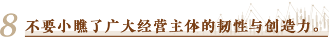 書寫這份“中國經(jīng)濟(jì)半年報”的,不光是宏觀政策的制定者,還有億萬經(jīng)營主體。它們在市場經(jīng)濟(jì)風(fēng)風(fēng)雨雨中摸爬滾打過來,承載著就業(yè),創(chuàng)造著財(cái)富,推動著創(chuàng)新,體現(xiàn)著社會責(zé)任。無論是服務(wù)業(yè)還是制造業(yè),無論是傳統(tǒng)產(chǎn)業(yè)還是戰(zhàn)略性新興產(chǎn)業(yè),哪一行哪一業(yè),缺得了充滿活力的經(jīng)營主體?看宏觀政策是否有效,標(biāo)準(zhǔn)之一就是看能否持續(xù)廣泛激發(fā)經(jīng)營主體的活力。一句話,任何時候都不要小瞧了廣大經(jīng)營主體的韌性與創(chuàng)造力,尊重他們,幫助他們,相信他們。