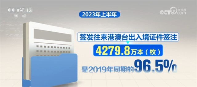今年上半年,各地公安機(jī)關(guān)出入境管理部門(mén)共簽發(fā)普通護(hù)照1000余萬(wàn)本,是2019年同期的68.2%;簽發(fā)往來(lái)港澳臺(tái)出入境證件簽注4279.8萬(wàn)本(枚),是2019年同期的96.5%;為在華外國(guó)人辦理停留居留證件37.9萬(wàn)人次,是2019年同期的86.7%。