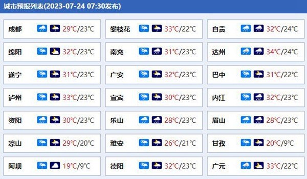 四川各城市預(yù)報(bào)。(來源:中國天氣網(wǎng))