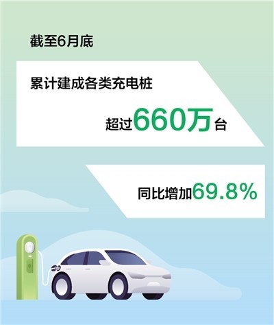 農(nóng)村地區(qū)適度超前建設(shè)充電基礎(chǔ)設(shè)施,只是我國(guó)充電樁建設(shè)的一個(gè)縮影。目前,我國(guó)已建成世界上數(shù)量最多、輻射面積最大、服務(wù)車輛最全的充電基礎(chǔ)設(shè)施體系。中國(guó)電動(dòng)汽車充電基礎(chǔ)設(shè)施促進(jìn)聯(lián)盟發(fā)布的最新數(shù)據(jù)顯示,截至6月底,全國(guó)累計(jì)建成各類充電樁超過(guò)660萬(wàn)臺(tái),同比增加69.8%。
