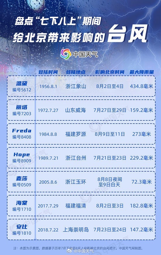 本次極端降水過程中,臺風(fēng)“杜蘇芮”的殘余環(huán)流北上是其中一個重要的原因。歷史上北京也曾多次受到臺風(fēng)及其減弱后的低壓影響,出現(xiàn)較強(qiáng)降雨。例如2017年第10號臺風(fēng)“海棠”和2018年第10號臺風(fēng)“安比”給北京帶來的最大降雨量都超過了100毫米,更早的1956年第12號臺風(fēng)“溫黛”導(dǎo)致的最大降雨量更是超過400毫米。