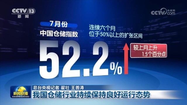 中國(guó)物流與采購(gòu)聯(lián)合會(huì)2日公布,今年7月份,中國(guó)倉(cāng)儲(chǔ)指數(shù)為52.2%,連續(xù)六個(gè)月位于50%以上的擴(kuò)張區(qū)間。數(shù)據(jù)顯示,倉(cāng)儲(chǔ)企業(yè)生產(chǎn)經(jīng)營(yíng)活動(dòng)活躍,業(yè)務(wù)量明顯增長(zhǎng),企業(yè)對(duì)市場(chǎng)前景保持樂(lè)觀。