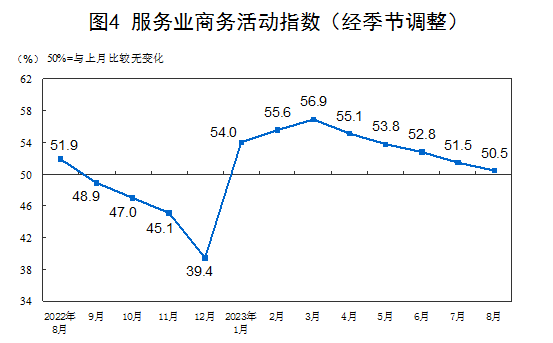 8月份,非制造業(yè)商務(wù)活動指數(shù)為51.0%,比上月下降0.5個百分點(diǎn),仍高于臨界點(diǎn),非制造業(yè)持續(xù)擴(kuò)張。
