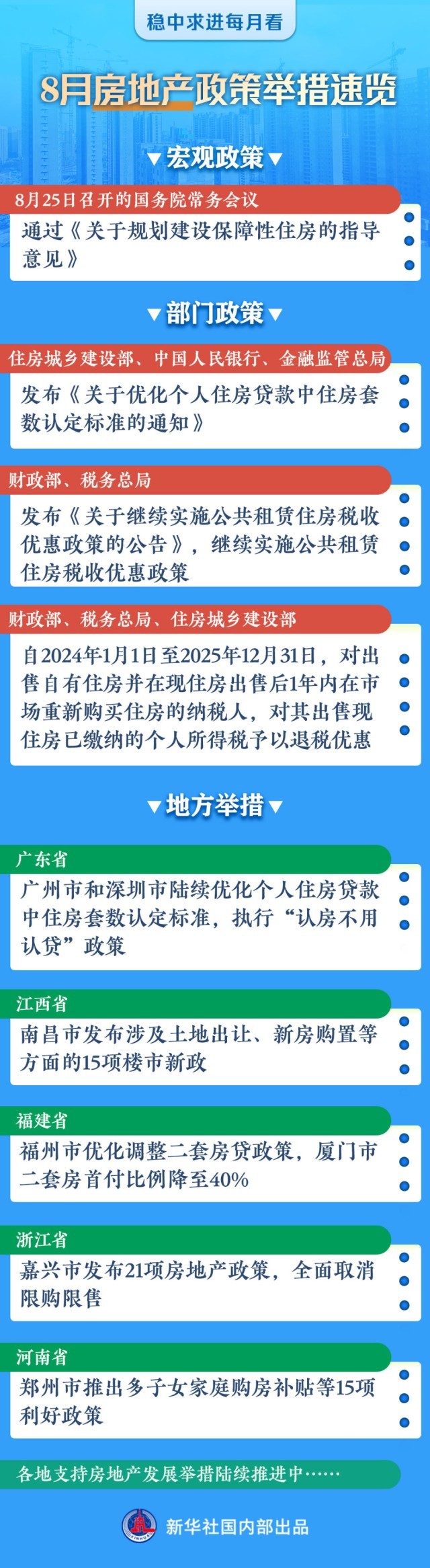 近段時間,相關(guān)部門陸續(xù)釋放地產(chǎn)領(lǐng)域積極政策信號:8月初,中國人民銀行在部署下半年工作時明確提出“繼續(xù)引導(dǎo)個人住房貸款利率和首付比例下行”;近日,住房城鄉(xiāng)建設(shè)部等三部門給出了“認(rèn)房不認(rèn)貸”政策具體實(shí)施標(biāo)準(zhǔn);財政部還公布了兩項(xiàng)針對房地產(chǎn)市場的稅收優(yōu)惠政策。