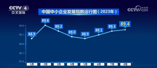 8月,中國(guó)中小企業(yè)發(fā)展指數(shù)為89.4,比7月上升0.1點(diǎn),這是繼6月、7月分別上升0.2點(diǎn)之后,連續(xù)第三個(gè)月上升。