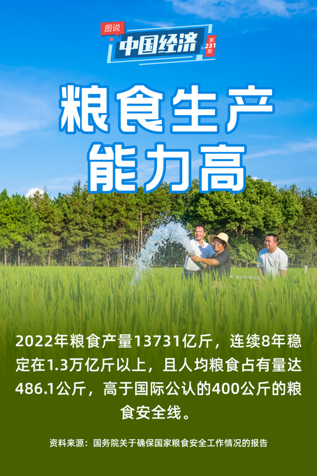 今年以來,極端氣候干擾全球農(nóng)業(yè)生產(chǎn),關(guān)于糧食安全的擔(dān)憂在全球蔓延。就我國糧食生產(chǎn)情況而言,國務(wù)院關(guān)于確保國家糧食安全工作情況的報告顯示,2022年,我國糧食產(chǎn)量13731億斤,連續(xù)8年穩(wěn)定在1.3萬億斤以上,且人均糧食占有量達486.1公斤,高于國際公認的400公斤的糧食安全線。