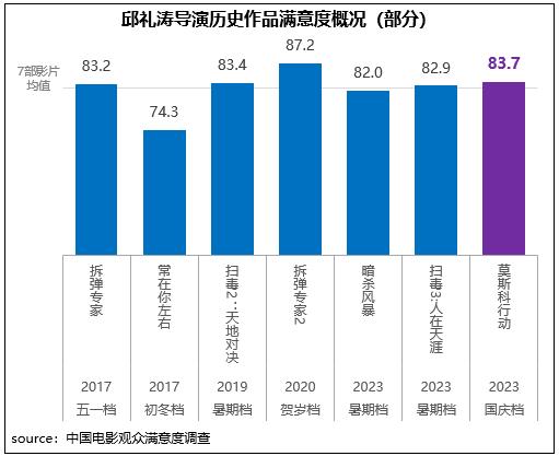 邱禮濤導(dǎo)演執(zhí)導(dǎo)的警匪動作電影《93國際列車大劫案:莫斯科行動》獲得觀眾滿意度評分83.7分,與檔期第一名和第二名僅差0.4分和0.1分;在滿意度調(diào)查過的邱禮濤導(dǎo)演七部影片中,《莫斯科行動》滿意度處在平均水平之上。