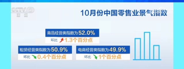 央視網(wǎng)消息:10月9日,中國商業(yè)聯(lián)合會發(fā)布10月份中國零售業(yè)景氣指數(shù)為51.3%,較上月微升0.5個百分點,創(chuàng)近一年新高。