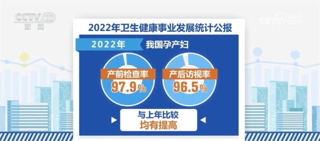在婦幼健康方面,2022年我國孕產婦產前檢查率97.9%,產后訪視率96.5%。與上年比較,產前檢查率和產后訪視率均有提高。2022年全國住院分娩率為99.94%,基本實現全部住院分娩。據全國婦幼健康監(jiān)測,2022年,我國5歲以下兒童死亡率6.8‰,嬰兒死亡率4.9‰,全國孕產婦死亡率為15.7/10萬,均有不同程度下降。