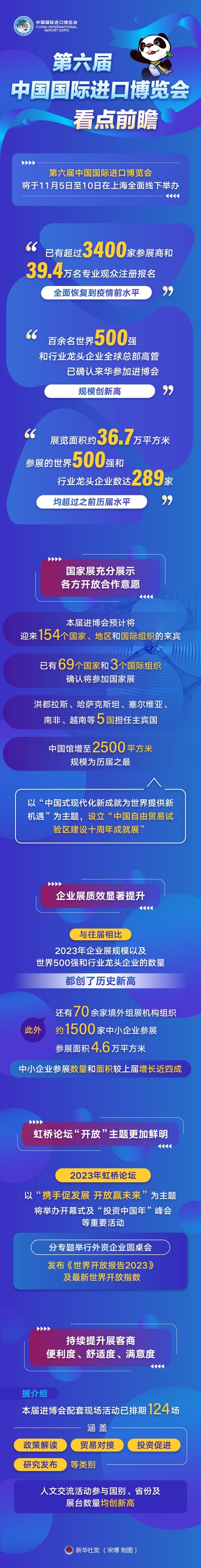 “已有超過3400家參展商和39.4萬名專業(yè)觀眾注冊(cè)報(bào)名,全面恢復(fù)到疫情前水平”“百余名世界500強(qiáng)和行業(yè)龍頭企業(yè)全球總部高管已確認(rèn)來華參加進(jìn)博會(huì),規(guī)模創(chuàng)新高”“展覽面積約36.7萬平方米,參展的世界500強(qiáng)和行業(yè)龍頭企業(yè)數(shù)達(dá)289家,均超過之前歷屆水平”……