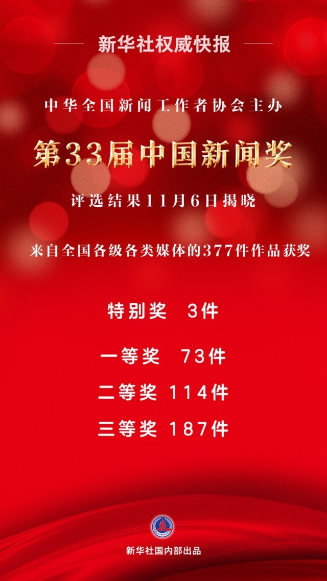 由中華全國(guó)新聞工作者協(xié)會(huì)主辦的第33屆中國(guó)新聞獎(jiǎng)評(píng)選結(jié)果11月6日揭曉。