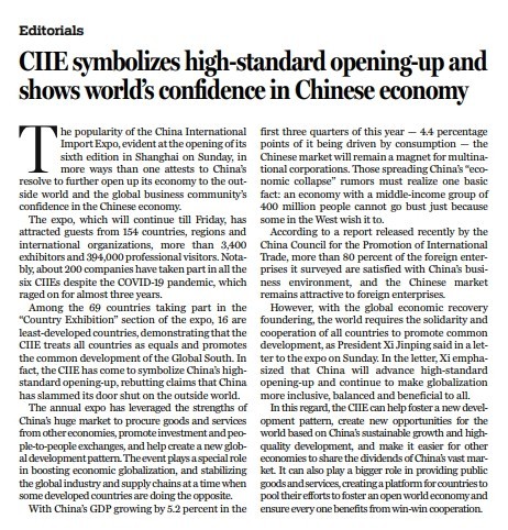 原標題:CIIE symbolizes high-standard opening-up and shows world’s confidence in Chinese economy