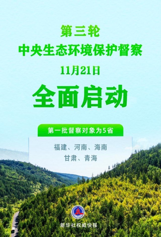根據(jù)《中央生態(tài)環(huán)境保護(hù)督察工作規(guī)定》,經(jīng)黨中央、國(guó)務(wù)院批準(zhǔn),第三輪中央生態(tài)環(huán)境保護(hù)督察于11月21日全面啟動(dòng)。