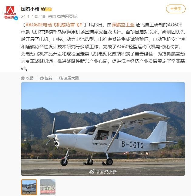 AG60E電動飛機成功首飛